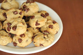 Precaliente el horno a 375°F.(190°C). Deja caer cucharadas redondas en bandejas de horno forrada con papel pergamino. Hornear por 9 minutos o hasta que esten de color dorado suave alrededor de los bordes. Traslarlas a la toalla de papel sobre el mostrador que se enfríe. Salen alrededor de cinco docenas.